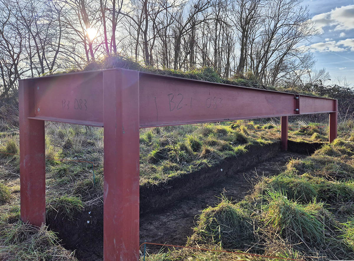 Eighty 30x30x27cm sods (30kg), carefully sliced so as not to damage its structure are removed in order, from the top and replaced exactly in the same place in the ground from where they came. This part of the work takes six days continuous lifting, whilst not stepping on and so not compacting the surrounding land.